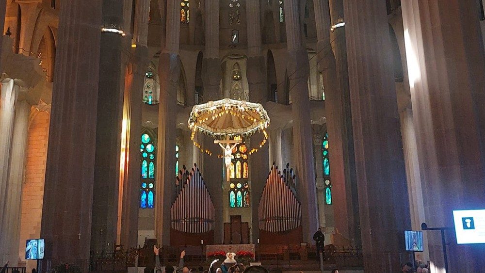Як паведамілі прэс-служба базілікі, дзякуючы ўсталяванню ніжняга элемента крыжа вежа Хрыста дасягнула 162,91 метра ў вышыню. Ніжняя частка крыжа мае вышыню 7,25 метра і важыць 24 тоны. Чатыры панэлі, з якіх яна складаецца, прыбылі ў Барселону ў ліпені 2025 года, а затым былі размешчаны на платформе на вышыні 54 метры над цэнтральным нефам. Там былі праведзены зборачныя работы, устаноўлена шкляное пакрыццё і завершаны ўнутраныя работы, у тым ліку ўстаноўка каменных элементаў.