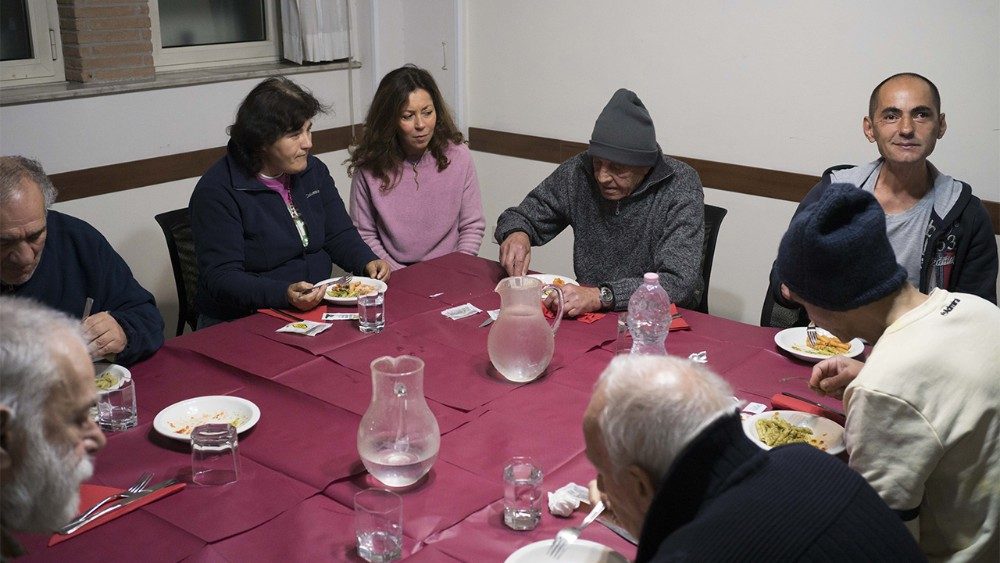 Прытулкам, створаным па ініцыятыве Францішка, апекваюцца Дыкастэрыя па міласэрным служэнні, супольнасць святога Эгідзія і шматлікія валанцёры. Святочнае меню ўключала макароны з соусам песта, запечаную індычку з зялёнай фасоляй, мандарыны і дэсерт.