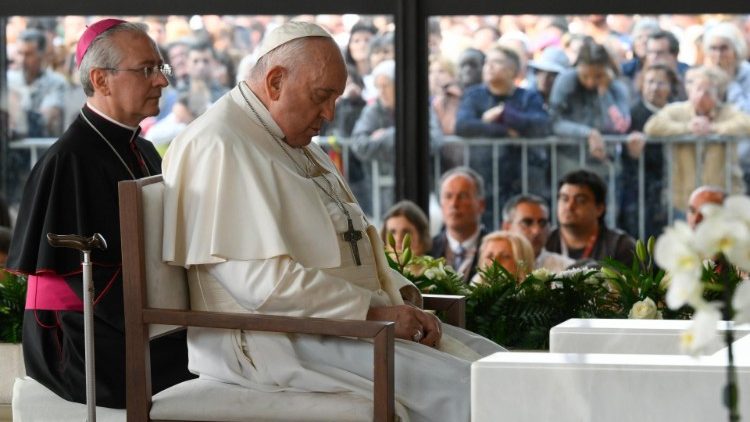 Und wieder sprach der Papst von einer doppelten Geste Mariens: Sie weise uns auf Jesus hin, und sie weise ebenso Jesus „auf das Herz eines jeden von uns hin“.