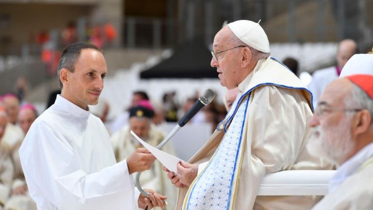 Mehrere von euch sind aus verschiedenen Teilen Frankreichs hierhergekommen: merci à vous! Ich möchte die Brüder und Schwestern grüßen, die in Begleitung des Bischofs und des Bürgermeisters aus Nizza gekommen sind und die den schrecklichen Anschlag vom 14. Juli 2016 überlebt haben. Lasst uns im Gebet all derer gedenken, die bei dieser Tragödie und bei allen Terroranschlägen in Frankreich sowie überall auf der Welt ihr Leben verloren haben. Terrorismus ist feige! Und werden wir nicht müde, für den Frieden in den Kriegsgebieten zu beten, insbesondere für das leidgeprüfte ukrainische Volk.