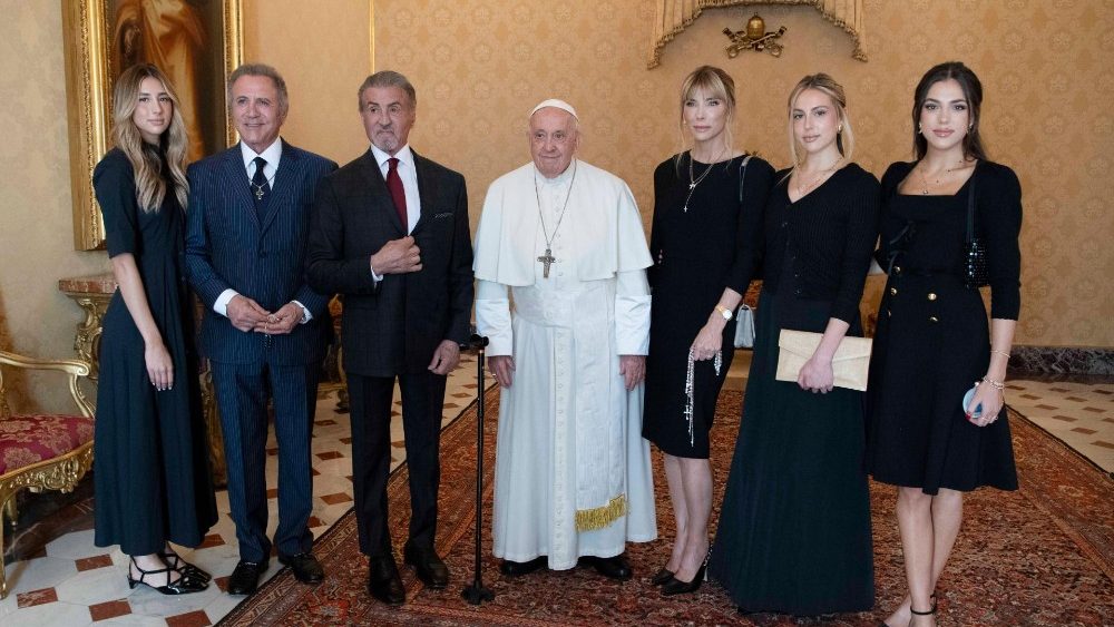 Der inzwischen 77-jährige Mime, der vor allem durch seine Rocky-Boxfilme zum Star wurde, wurde von seiner Familie in den Vatikan begleitet. Stallone ist derzeit in Italien im Urlaub; der Ort, von dem aus einst sein Vater in die USA emigrierte, hat ihn in diesen Tagen zum Ehrenbürger gemacht.