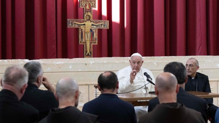 In einem Saal der Pfarrei „Santa Maria della Salute“ traf sich der Papst, der Bischof von Rom ist, mit den ungefähr 35 Pfarrern der Region, um über pastorale Herausforderungen zu sprechen. Der etwa zweistündige Besuch war nicht vorab angekündigt worden.