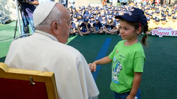 Auf dem kleinen, erst kürzlich errichteten Sportplatz unterhielt sich der Papst zunächst mit den Animateuren und dann mit den Kindern und Jugendlichen, die an der Sommerfreizeit „Estate ragazzi in Vaticano“ teilnehmen. Dabei ging es, wie das vatikanische Presseamt hinterher mitteilte, querbeet um Themen wie Familie, Eltern oder Beziehung zu den Großeltern.