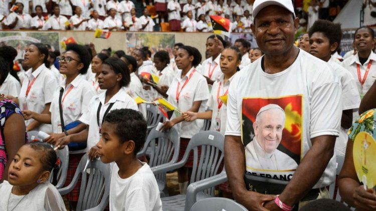 Die schwierige Realität des Alltags in Papua-Neuguinea sprang einem bei diesem Papst-Termin nicht ins Auge, denn die etwa 800 jungen Leute tanzten und sangen vor Freude über den Besuch, und viele waren zur Feier des Tages mit bunten T-Shirts neu eingekleidet worden. In den Fragen allerdings, die sie an den Papst stellten, wurde dann doch einiges von ihrer dramatischen Lage spürbar.