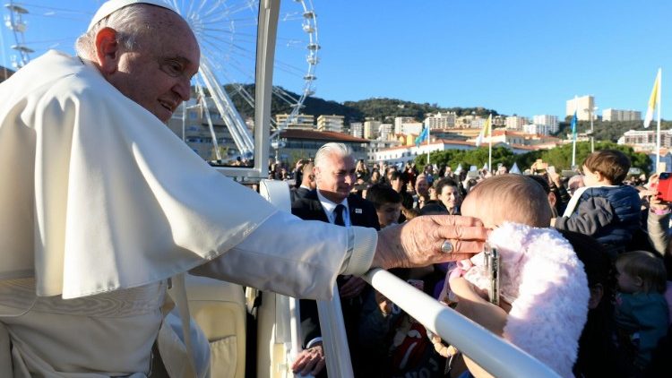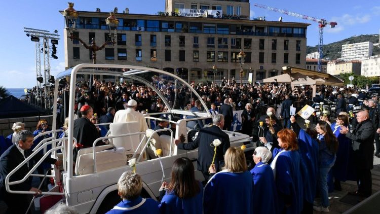 Die Eucharistiefeier auf der „Place d’Austerlitz“ zu Füßen einer monumentalen Napoleon-Statue und eines Riesenrads war der Höhepunkt der eintägigen Visite des Papstes auf der französischen Mittelmeerinsel. Franziskus ist der erste Papst, der Korsika einen Besuch abgestattet hat. Anlass der Papstreise war die Teilnahme an einem Kongress zum Thema Volksfrömmigkeit.