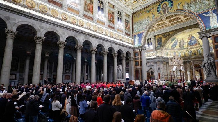 Die Tragweite dieser Bekehrung spiegelt sich in der Änderung seines Namens von Saulus zu Paulus wider. Durch die Gnade Gottes wurde derjenige, der Jesus einst verfolgte, vollständig verwandelt und zu seinem Zeugen. Derjenige, der den Namen Christi einst brutal bekämpfte, verkündet nun seine Liebe mit glühendem Eifer, wie es der Hymnus, den wir zu Beginn dieser Feier gesungen haben, eindrücklich zum Ausdruck bringt (vgl. Excelsam Pauli gloriam, V. 2). Nun, da wir hier bei den sterblichen Überresten des Völkerapostels versammelt sind, werden wir daran erinnert, dass seine Sendung auch die Sendung aller Christen heute ist: Christus zu verkünden und alle einzuladen, auf ihn zu vertrauen. Jede echte Begegnung mit dem Herrn ist nämlich ein Moment der Verwandlung, der eine neue Sichtweise und eine neue Ausrichtung schenkt, sodass wir die Aufgabe des Aufbaus des Leibes Christi erfüllen können (vgl. Eph 4,12).