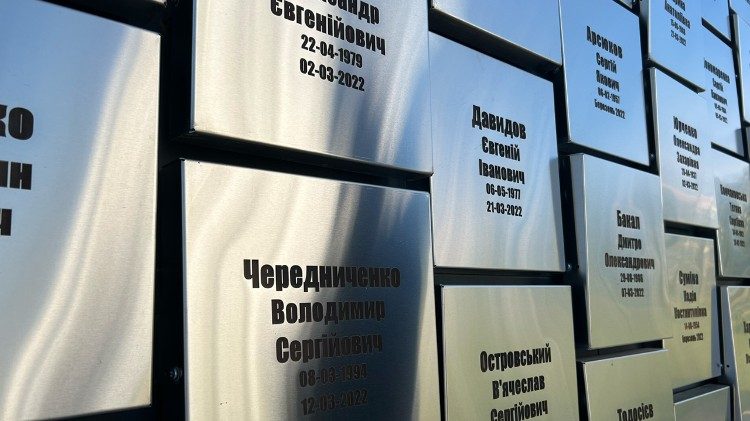 Heute erhebt sich über der Stelle des Massengrabs von Butscha ein Mahnmal für die Ermordeten. Zwischen ihren Namen und Lebensdaten ist eine Darstellung der Pietà angebracht. In der orthodoxen Kirche gleich daneben zeigen Fotos den schrecklichen Anblick, der sich den Befreiern vor dreieinhalb Jahren bot; darüber hängen Ikonen.