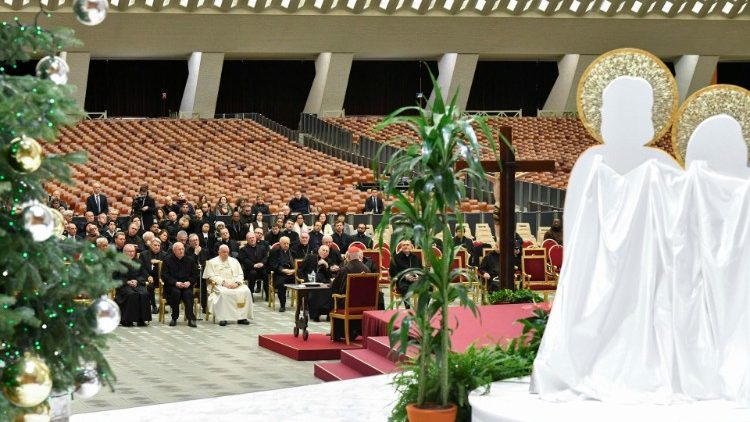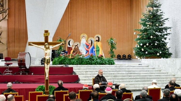 Franziskus und die Spitzenvertreter der Kurie bei der Adventspredigt Franziskus und die Spitzenvertreter der Kurie bei der Adventspredigt  (Vatican Media)