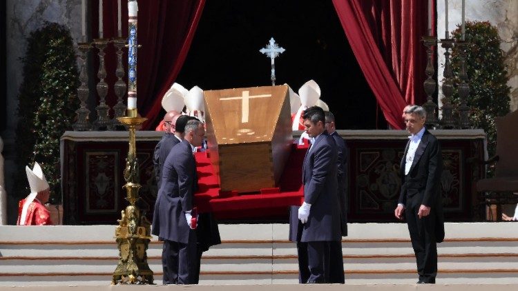 „Herr, gib ihm die ewige Ruhe, und das ewige Licht leuchte ihm,“ sang die Schola, als der einfache doppelwandige Holzsarg des Papstes aus der Basilika auf den Vorplatz hinausgetragen wurde. Franziskus' Vorgänger Benedikt XVI. war vor zwei Jahren noch in drei ineinanderpassenden Särgen zu Grabe getragen worden, doch kurz darauf hatte Franziskus die rituellen Vorgaben vereinfacht.