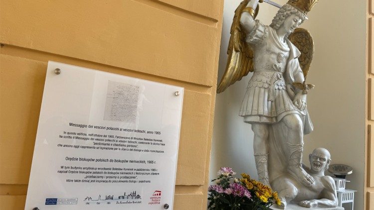 „Die Erinnerung an den Ort, an dem die Botschaft entstanden ist, hat im Jahr der Versöhnung, das wir seit einigen Monaten in Breslau begehen, eine besondere Bedeutung“, betonte Jacek Sutryk bei der Enthüllung der Tafel. Die Inschrift in italienischer und polnischer Sprache lautet: „In diesem Gebäude verfasste der Breslauer Erzbischof Bolesław Kominek im Oktober 1965 die Botschaft der polnischen Bischöfe an die deutschen Bischöfe mit dem historischen Satz ‚Wir vergeben und bitten um Vergebung‘, der auch heute noch Inspiration für die Suche nach Dialog und Versöhnung ist.“