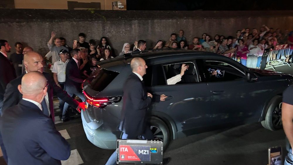 El Papa abandonó su residencia de verano hacia las 21.00 horas. Una hora antes se había asomado al balcón para saludar a las numerosas personas que se habían congregado en la calle para esperar su salida. Ya era de noche cuando atravesó la reja de la Villa Barberini y se detuvo a hablar con algunos creyentes que le saludaban.