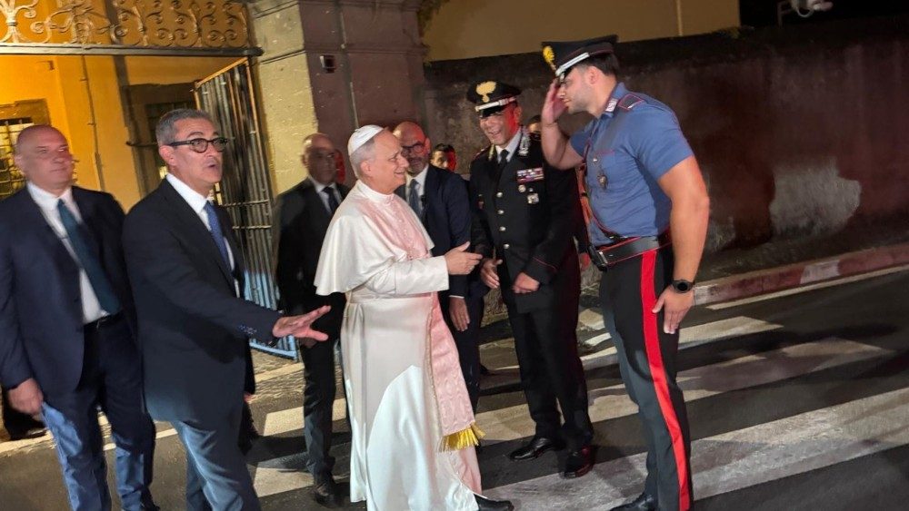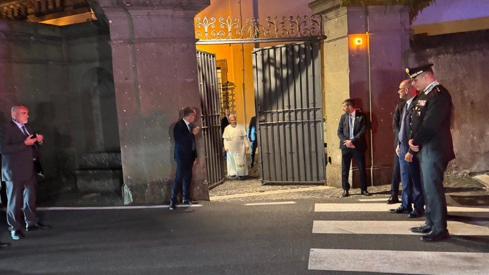 Hacia las 20.30 horas de hoy, cuando ya había anochecido, se abrieron las puertas de Villa Barberini, en el lago de Castel Gandolfo, una señal para los periodistas que esperaban fuera la salida del Papa. Y así, antes de subir al coche, de una manera que se está convirtiendo casi en costumbre, León XIV saludó sonriente a los micrófonos de varios periódicos respondió a algunas preguntas, mientras muchas personas a su alrededor le aplaudían.