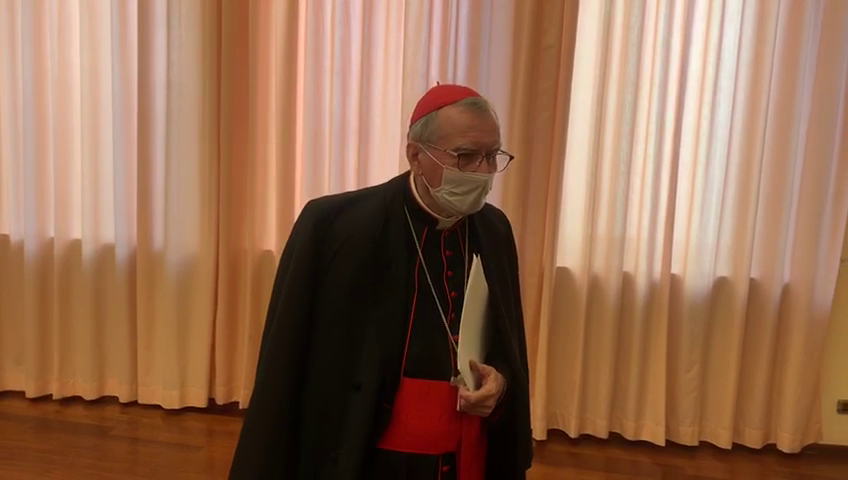 El secretario de Estado, Pietro Parolin, dijo la Laudatio dedicada al Patriarca de Constatinopla. Al concluir la ceremonia, dedicó unos minutos a los periodistas presentes para responder algunas preguntas.