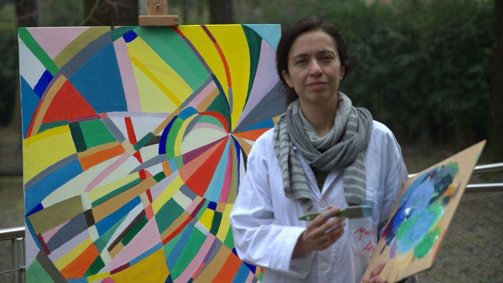 Para la embajadora ante la Santa Sede, al ver esa colección, consideró que Simetría Divina representa los valores centrales del Jubileo de la Esperanza. Los cuadros son vibrantes, dijo, denotan alegría y esperanza.