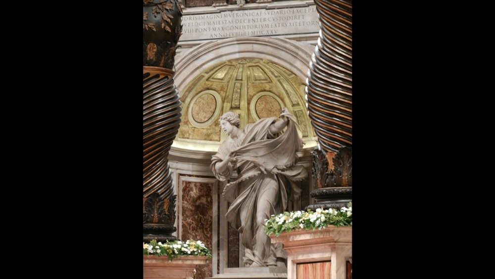 «Lorsque nous parlons de Véronique, explique la théologienne à Radio Vatican-Vatican News, nous voulons parler de la relique du linceul sur lequel, selon la tradition, pendant le chemin de croix, Jésus a imprimé son visage plein de sang. Le terme «Véronique» désigne aujourd'hui à la fois la pieuse femme qui offrit le linceul à Jésus et la relique. Cette dernière, lors de l'ostension, n'est visible que de loin et apparaît comme une image sombre, difficilement reconnaissable. Le linceul de Véronique est sombre parce qu'il s'agit d'une relique de sang et le sang devient sombre: les yeux de Jésus, vrai Dieu et vrai homme, y sont mi-clos. De même que nous fermons les yeux en nous approchant de quelque chose, Jésus, vrai homme, a lui aussi mi-clos ses yeux par l'effet du réflexe des paupières, en séchant son visage souffrant. D'ailleurs, dans les différentes iconographies de Véronique, qui font autorité car elles ont été réalisées avec l'autorisation de la basilique Saint-Pierre, la couronne d'épines n'est pas présente. En essuyant son visage, Jésus ne l'a pas touché pour ne pas augmenter la douleur».