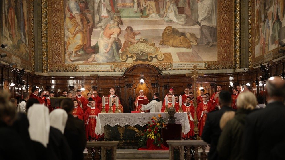 Pjevanjem je svetu misu animirao zbor crkve sv. Jeronima pod vodstvom vlč. Brune Diklića, dok su u liturgijskoj asistenciji sudjelovali salezijanski bogoslovi i bogoslovi iz Zavoda Germanicum et Hungaricum u kojemu je za vrijeme svoga studija u Rimu boravio i blaženi Alojzije Stepinac.