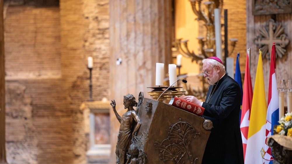 Koncertu u Panteonu nazočio je i okupljenima se obratio mons. Paul R. Gallagher, tajnik za odnose s državama i međunarodnim organizacijama Državnog tajništva Svete Stolice. Mons. Gallagher istaknuo je više od trinaest stoljeća zajedničke povijesti, duboke i stoljetne veze koje spajaju Svetu Stolicu s Hrvatskom, a koje se očituju i danas. „Kao potvrda da takvi odnosi ne pripadaju samo prošlosti, nego da su i danas živa i prisutna stvarnost, s radošću se prisjećam svog nedavnog posjeta Zagrebu, koji se dogodio prošle godine, što je konkretan znak bratstva koje se neprestano obnavlja“, kazao je mons. Gallagher. Ujedno, izrazio je zahvalnost za „poštovanje, uvažavanje i pažnju koju hrvatske vlasti pokazuju prema mjesnoj Crkvi“, s kojom su „uspostavile dobar i plodonosan dijalog“, kao i prema Svetoj Stolici.