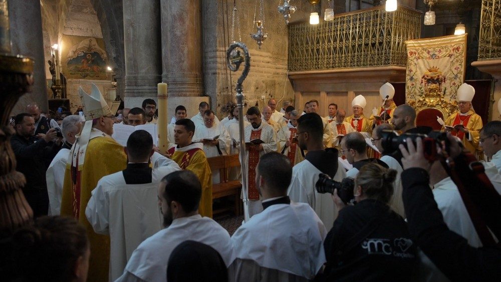 Alla luce delle fiaccole, si rinnovano le promesse battesimali, si riceve l’acqua benedetta. La lunga liturgia si conclude in un clima di festa. Ci si scambia gli auguri di Pasqua, ci si mette in fila per una foto ricordo. All’uscita un lungo applauso accoglie la processione di frati e sacerdoti del Patriarcato latino. Cristo è veramente risorto, un dono di speranza da ridomandare ogni mattina. Come, da secoli, testimonia chi vive in questa terra, tanto ferita quanto benedetta.