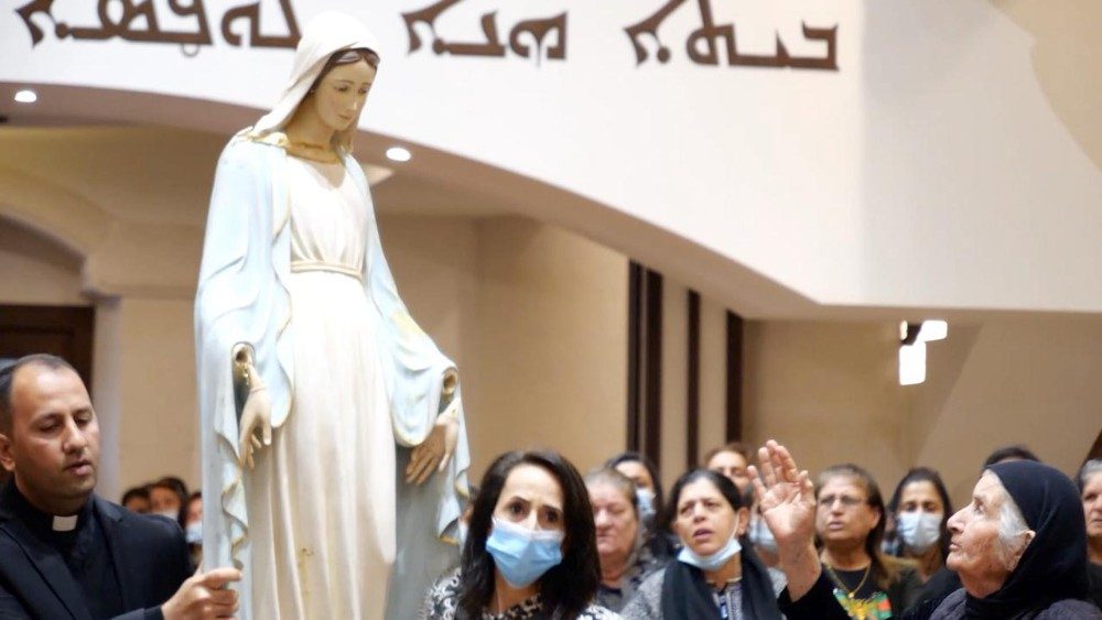 Padre Thatbit si mostra cauto e dice che i frutti della visita del Papa matureranno piano piano. “Ancora stiamo aspettando che il popolo iracheno trovi il coraggio di andare oltre i confini dell’appartenenza etnica, religiosa. Bisogna ritrovare l’unità”, afferma. “Speriamo che nel Paese si aprano le menti: ciò che giova non è il settarismo, è invece una leadership che faccia uscire l’Iraq dal buio del tunnel”. E ricorda ancora che alla messa celebrata nello stadio della capitale del Kurdistan iracheno campeggiava la statua della Madonna, anche questa semidistrutta dall’Isis. “L’avevamo data in prestito proprio per quella circostanza speciale, era stata decapitata. L’hanno restaurata. Ora sta di nuovo nella mia parrocchia e la gente va là a pregare”.