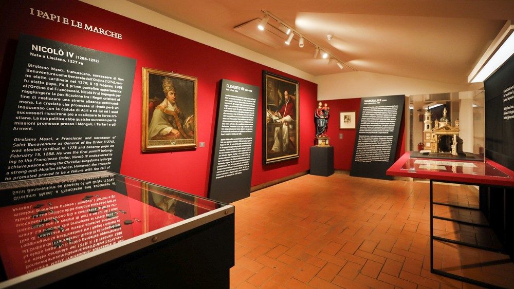 Il curatore Marco Pizzo ricorda i pontefici marchigiani che si incontrano nella mostra: “Nicolò IV sicuramente rappresenta una rivoluzione culturale. E’ il primo Papa francescano che dà anche molte committenze alle Marche come segno tangibile del suo potere, ma è quello che rinnova, sulla base della lezione francescana, anche la Chiesa cattolica”. Poi passa a Clemente VII, Pio VIII, Leone XII, tutti Papi che in qualche maniera concorrono a mantenere un legame forte con il territorio, al tempo stesso impegnandosi all'interno della Chiesa con un recupero tramite la Congregazione per la Dottrina della Fede, il Sant'Uffizio, attraverso l'indice dei libri proibiti e non alla soppressione delle eresie, ma quanto al tentativo, delle volte mal riuscito, come nel caso di Giordano Bruno, di mantenere intatta e pura la fede cattolica” .