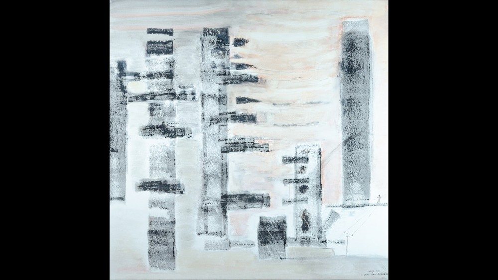 Il mare azzurro e denso della sua riviera ligure o le sue trasparenze, talvolta solcato da vele che sembrano sottili spicchi di vento o ancora un mare corrusco e caotico di tempesta, sono soggetti che non si dimenticano nella produzione dell’artista. Dalla fluidità della natura Spotorno passa poi a dipingere la verticalità seriale dei palazzi delle metropoli, la serie delle “Città umanizzate”. “In queste opere provocatorie”, scrive la curatrice Flavia Motolese, “l’artista mostra le drammatiche contraddizioni della società contemporanea, lasciando che siano gli edifici dei paesaggi urbani a parlare al posto degli abitanti. I dipinti immaginano le città dall’alto: luoghi in cui dolore e quotidianità sembrano intrecciarsi nella solitudine della vita metropolitana, trasformandosi in gabbie che deprivano le persone di umanità, autonomia e libero arbitrio. Lo sguardo dell’artista, tagliente come i suoi pensieri, svela come ormai nelle nostre città ci sia poco di umano", conclude.