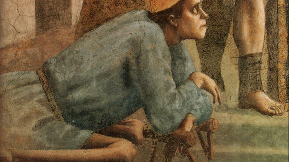La povertà entra davvero nella pittura con Masaccio, sulle pareti della Cappella Brancacci a Firenze. Lì, all’inizio del Quattrocento, la vita quotidiana si fa spazio sacro. Nei mendicanti che chiedono aiuto a san Pietro o negli storpi che attendono una guarigione, Masaccio riconosce il volto della città. Non allegorie, ma persone. Firenze, con le sue strade, le facciate dei palazzi chiusi e la sua umanità più fragile, diventa teatro della salvezza. In questa scelta si compie una rivoluzione: il realismo non è più solo conquista tecnica, ma gesto etico. Il povero non è rappresentato per suscitare pietà, bensì come parte necessaria del mondo che l’artista abita. È in questa concretezza che la pittura italiana pone le sue radici.