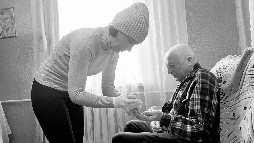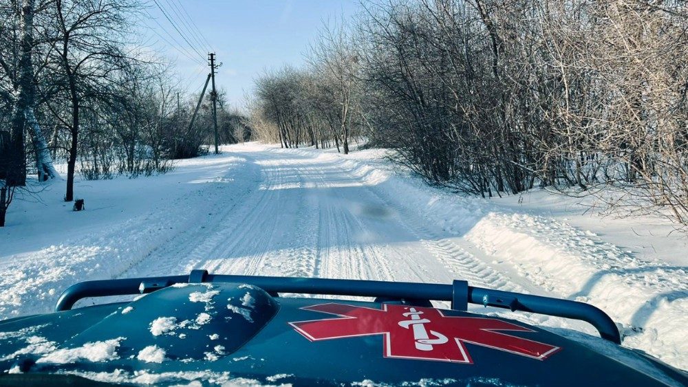 La macchina blu con impressa la Stella della Vita avanza tra le strade dissestate e devastate dalle bombe. Il manto spesso della neve affatica le ruote, il fragore dei missili fa trasalire. Un drone è caduto addosso pure ad uno dei loro veicoli sabato scorso. Nessun ferito, fortunatamente, ma gravi danni alla vettura. Volontari, medici e infermieri della organizzazione benefica cattolica Dignitas Ukraine, nonostante tutto, vanno avanti. Sfidano dalle prime ore del mattino fino a sera gelo, rischi e paura; lo fanno per quegli oltre 2 mila vecchietti, malati e disabili dei villaggi nelle campagne isolate di Kharkiv e Sumy, troppo poveri o debilitati per fuggire da queste zone nella parte nord-orientale del Paese gravemente colpite dalla guerra d’invasione. Li assistono da mesi con cure e medicinali, con una buona dose di vicinanza e conforto o con progetti psicologici mirati (ad esempio, un programma di ippoterapia per bambini traumatizzati) arrivando fino a 50 km dalla linea del fronte o, a volte, anche 10. La loro missione è questa sin dall’inizio, sin da quando, cioè, il giovane project manager strasburghese Paul Vezaux, insieme a Lilia Bukhalova, ucraina di Kharkiv, hanno avuto “l’ispirazione” – loro raccontano nata nella preghiera – di fare qualcosa per le vittime di questo conflitto senza fine.