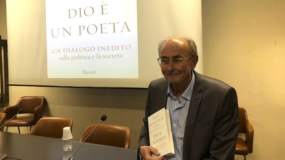 Ho scelto per l’edizione italiana questo titolo, “Dio è un poeta”, che è una sua frase, spiega l’intellettuale, “perché vedo in Dio e nel Papa qualcosa che sfugge alla razionalità ma anche ai valori dilaganti oggi. E un poeta non serve a niente, ma serve a tutto.” E ancora nell'intervista a Radio Vaticana Italia aggiunge: "La poesia è qualcosa di gratuito, di sensibile, di inutile, di misterioso, che si contrappone alla ricerca del mero profitto. E il Papa parla dell'utopia dei sogni che si possono realizzare".