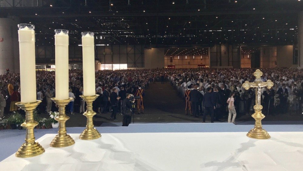 Nell'omelia della celebrazione eucaristica iniziata tra i canti festosi degli oltre quarantamila fedeli al Palaexpo di Ginevra, Papa Francesco, ricordando la preghiera del Padre Nostro, indica tre parole “che ci portano al cuore della fede”: padre, pane e perdono. “La parola ‘Padre’ – spiega il Papa dal palco sovrastato da un grande crocifisso sospeso - è “la chiave di accesso al cuore di Dio”. Gesù – aggiunge – è il “Pane quotidiano”, “l’alimento base per vivere bene”. Francesco sottolinea che “il Padre è felice quando ci amiamo e perdoniamo di vero cuore”. (Ascolta il servizio con la voce del Papa)