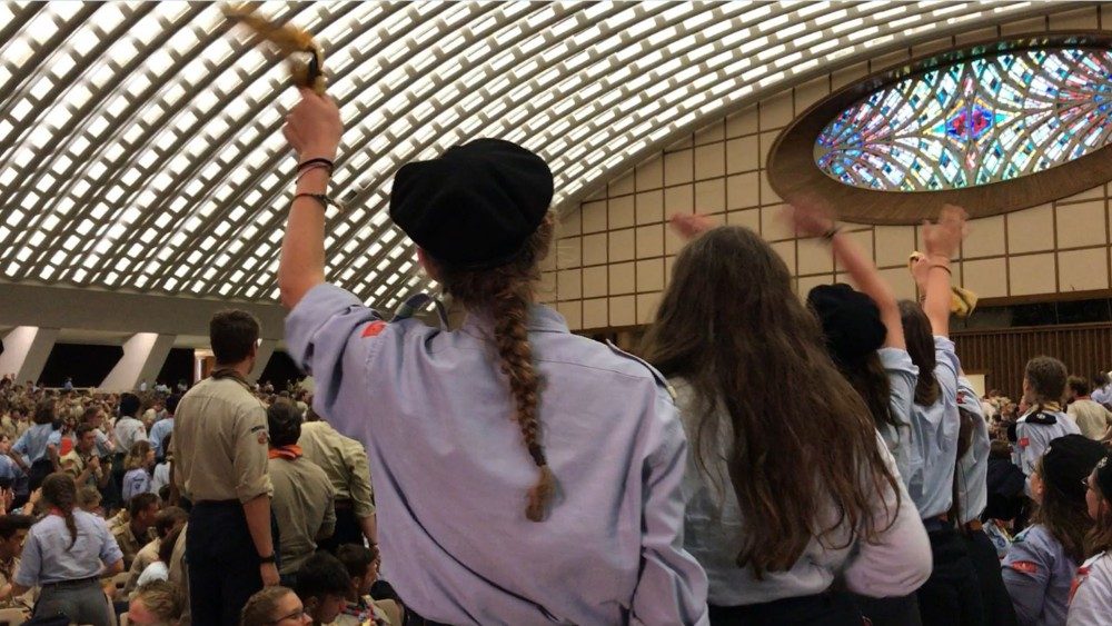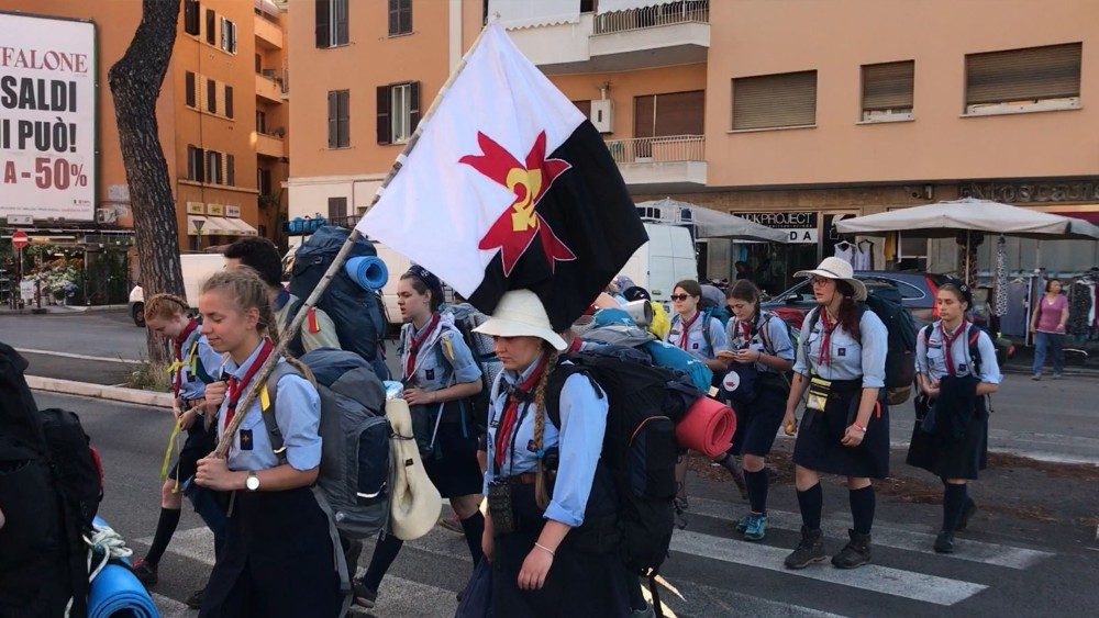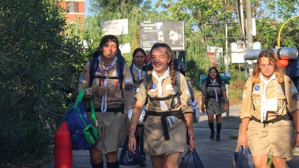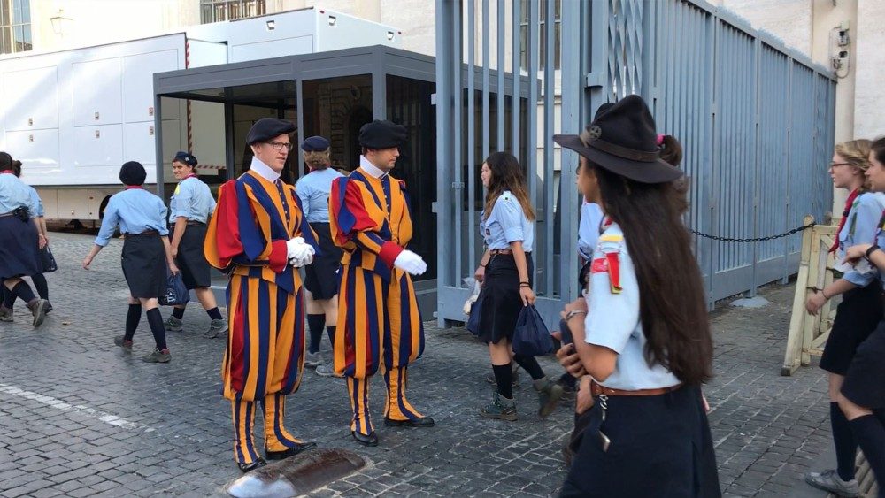 “Di Papa Francesco si nota subito l’amore per la natura e per la strada. A lui portiamo tutte le esperienze che abbiamo vissuto, tutti i volti che abbiamo incontrato, la fraternità che abbiamo rivisto negli altri fratelli e sorelle scout e tanta gioia”. Sara Verdile è la capo fuoco del gruppo Roma 11 degli Scout d’Europa, e con le otto scolte del fuoco “Edelweiss” sta aspettando di entrare in Vaticano e poi in aula Paolo VI per incontrare Papa Francesco, con i quasi 5 mila scout da 21 Paesi d’Europa ma non solo, protagonisti di Euromoot 2019, pellegrinaggio sulle strade dei Santi dell’Italia centrale che li ha portati fino a Roma.