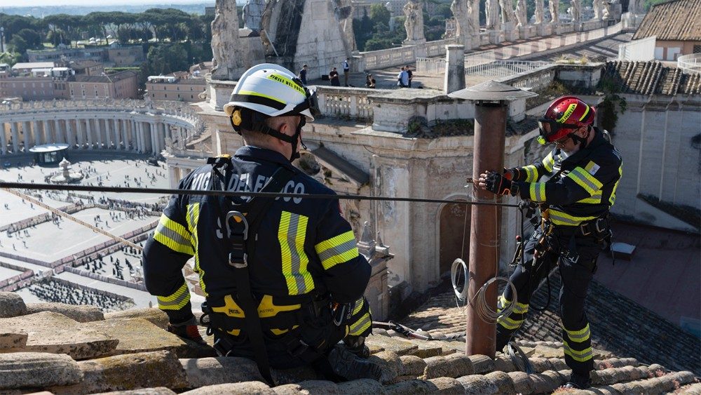 Le immagini dell'installazione della stufa in Cappella Sistina