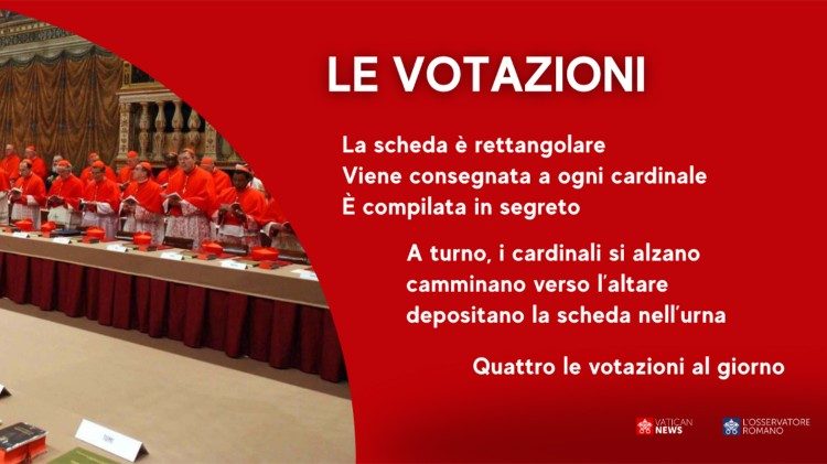 Esaurite le fasi preliminari, per i porporati è l'ora della scelta. I quattro scrutini quotidiani sono stabiliti due al mattino e due al pomeriggio. Le norme stabiliscono che dopo la 33.ma o 34.ma votazione si passerà direttamente, e obbligatoriamente, al ballottaggio fra i due cardinali che avranno ricevuto il maggior numero di voti nell’ultima votazione. Anche in questo caso, però, sarà sempre necessaria una maggioranza dei due terzi. I due cardinali rimasti in lizza, non potranno partecipare attivamente al voto. Se per un candidato i voti raggiungono i due terzi dei votanti, l'elezione del Pontefice è canonicamente valida.
