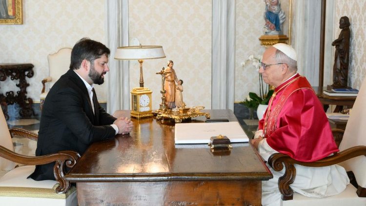 Leone XIV ha ricevuto questa mattina, 13 ottobre, in udienza nel Palazzo Apostolico vaticano il presidente della Repubblica del Cile, Gabriel Boric Font. A riferirlo un comunicato della Sala Stampa della Santa Sede.