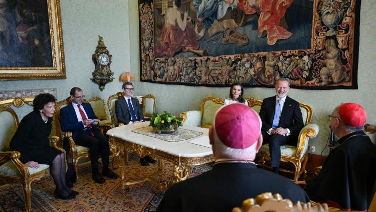 Nel Palazzo Apostolico, riferisce un comunicato della Sala Stampa della Santa Sede, questa mattina, 20 marzo, Papa Leone ha ricevuto in udienza il Re Felipe VI e la Regina Letizia di Spagna. Successivamente i Reali si sono incontrati con il cardinale segretario di Stato, Pietro Parolin e monsignor Paul Richard Gallagher, segretario per i Rapporti con gli Stati e le Organizzazioni Internazionali.