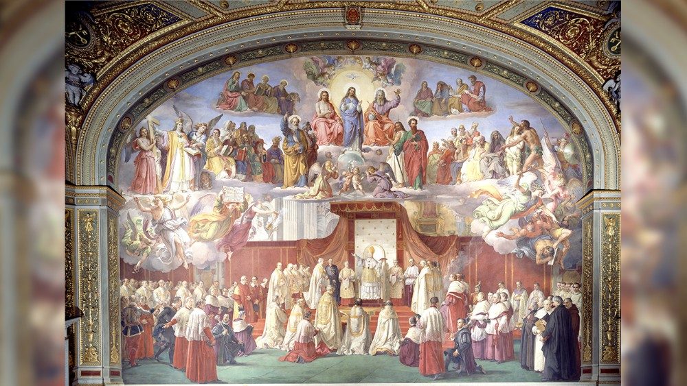 La proclamazione del dogma dell'Immacolata Concezione da parte di Pio IX è celebrata in una sala dei Musei Vaticani. Una ricca decorazione ad affresco del XIX secolo ed un prezioso mobile - biblioteca con le traduzioni in 110 lingue della Costituzione Apostolica Ineffabilis Deus, promulgata l'8 dicembre 1854