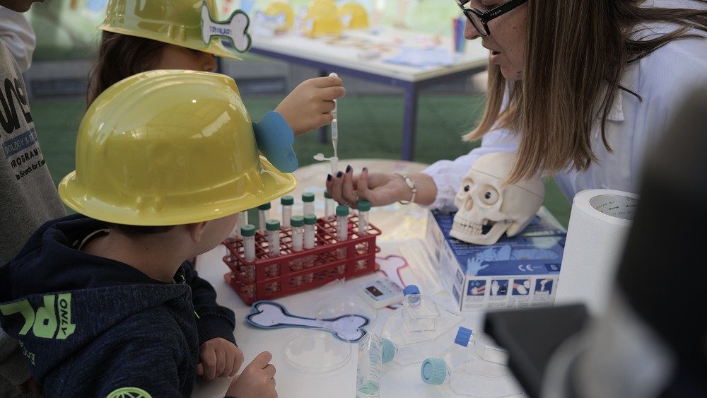 A inizio settimana i ricercatori dei laboratori di San Paolo del Bambino Gesù hanno accolto gli studenti più grandi svelando loro i segreti del proprio lavoro. Nelle giornate del 28 e 29 settembre, invece, nello spazio giochi delle sedi del Gianicolo e di Palidoro si sono svolte lezioni rivolte ai più piccoli per insegnare loro il funzionamento dello scheletro umano.