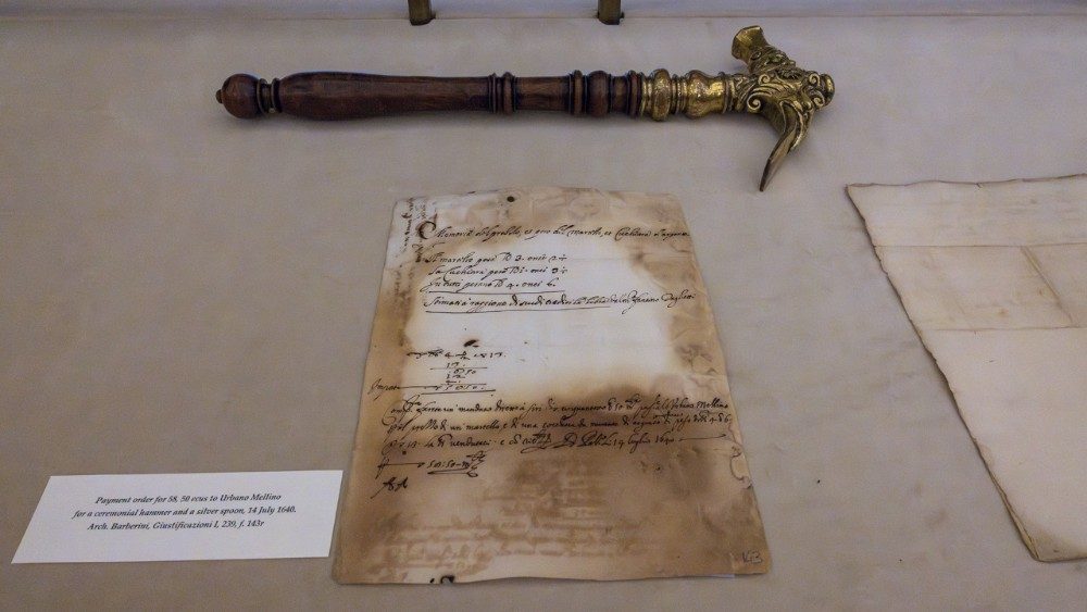 L’ape dello stemma di Casa Barberini spicca nel pregiato martello cerimoniale del primo quarto del XVII secolo esposto in una vetrina. «Un oggetto - spiega Luigina Orlandi, dell’Ufficio Promozione e Sviluppo della Biblioteca Vaticana - al quale è accostato un documento del nostro archivio che rende conto di una commissione per realizzare proprio un martello cerimoniale. Non sappiamo se si tratti dello stesso manufatto, ma il legame è forte ed evocativo. Codex valorizza e connette oggetti culturali provenienti da contesti diversi, in un allestimento che ne esalta l’unicità e, al tempo stesso, la complementarietà».