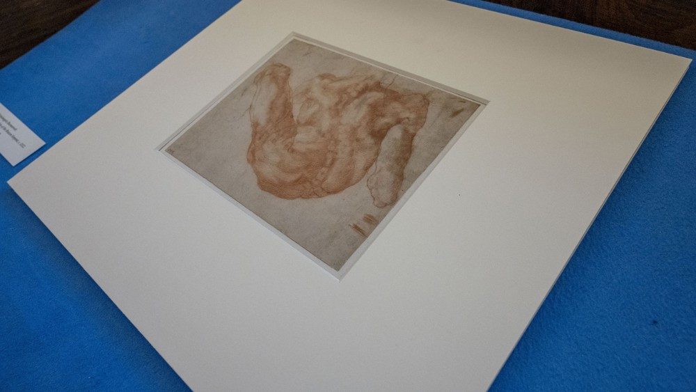 Rivelatrici del temperamento del grande Michelangelo e della sua potenza espressiva sono due opere esposte: uno schizzo a sanguigna, studio per una figura della Cappella Sistina, e un frammento murale a carboncino proveniente dalla cucina di Casa Buonarroti a Settignano con un nudo maschile di tre quarti: forse un tritone o un satiro. A questi capolavori grafici sono affiancati testi, note e disegni autografi del grande scultore e pittore rinascimentale, custoditi nella Biblioteca Vaticana.