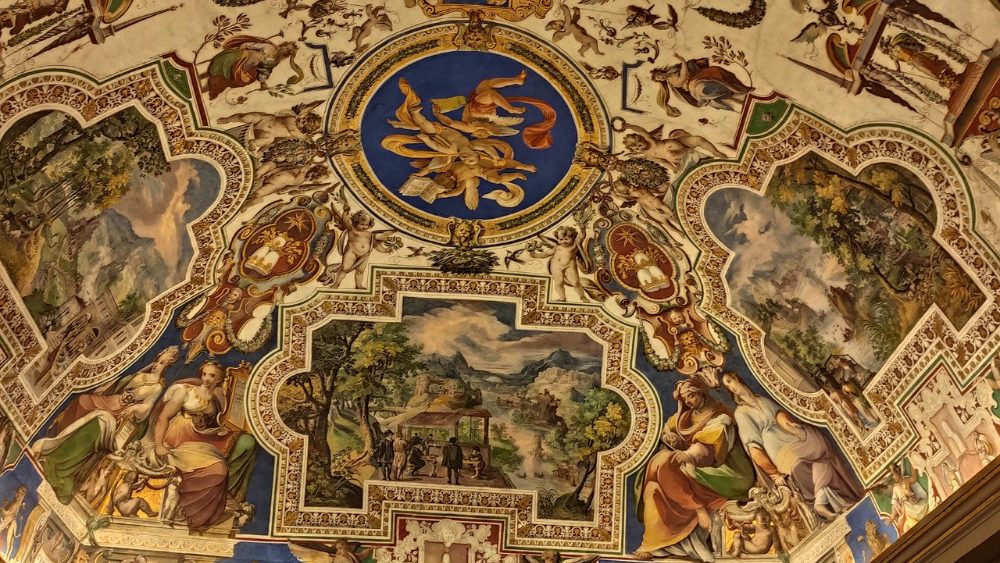 Nel Salone Sistino, che ha fatto da teatro all'incontro, tutto rimanda alla parola: gli affreschi che lo decorano traducono in immagini diversi alfabeti e linguaggi, danno vita a un concerto simbolico creando un ponte tra la tradizione teologica, il magistero della Chiesa rappresentato dai concili e le grandi biblioteche dell’antichità: un legame e una sinergia volti a far coltivare e fiorire l’umano, a far dialogare quindi fede, cultura, aprendosi al dialogo con le varie culture e tradizioni religiose.