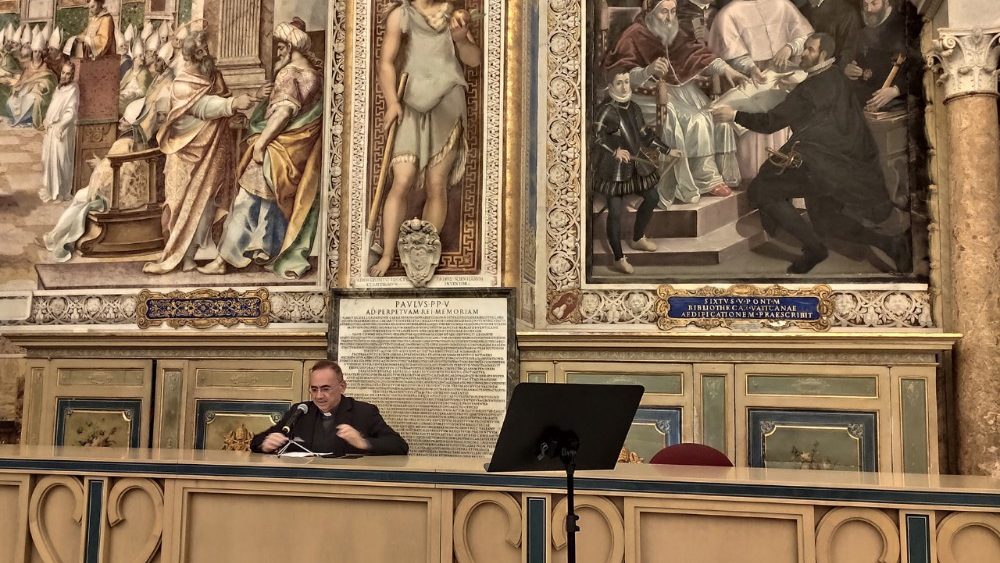 "Parole aperte. Lessico giubilare del nostro tempo", l’iniziativa della Biblioteca Apostolica Vaticana (Bav), in collaborazione con l’Istituto di cultura e formazione Antonio Rosmini, è giunta al termine della rassegna scegliendo un tema che si riflette nel titolo stesso dell’evento: 'parola', che in questo ciclo di incontri, in cui sono stati approfonditi alcuni termini presenti nella bolla di indizione del Giubileo Pellegrini di speranza, diventa concentrazione, punto di arrivo "della possibilità di far dialogare fede, cultura, arte, varie espressioni artistiche in un luogo, il Salone sistino, che ha un valore storico legato proprio alla vocazione stessa della biblioteca", osserva don Mauro Mantovani, prefetto della Biblioteca Apostolica Vaticana.
