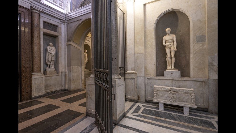 Alla luce di tutto ciò si è reso necessario un restauro, al momento riguardante solo le quattordici opere e le nicchie, condotto tra il 2023 e il 2024 grazie al generoso sostegno del Capitolo della Florida dei Patrons of the Arts in the Vatican Museums. “Speriamo di poter intervenire presto anche sull’architettura in modo da poter adeguare il contenuto al contenitore”, auspica il vice direttore. L’intervento conservativo, dalla verifica strutturale alla pulitura, è stato sapientemente svolto dal Consorzio Kavaklik Restauro, sotto la direzione scientifica del Reparto Antichità Greche e Romane e del Laboratorio di Restauro Materiali Lapidei, in stretta collaborazione con il Gabinetto di Ricerche Scientifiche.