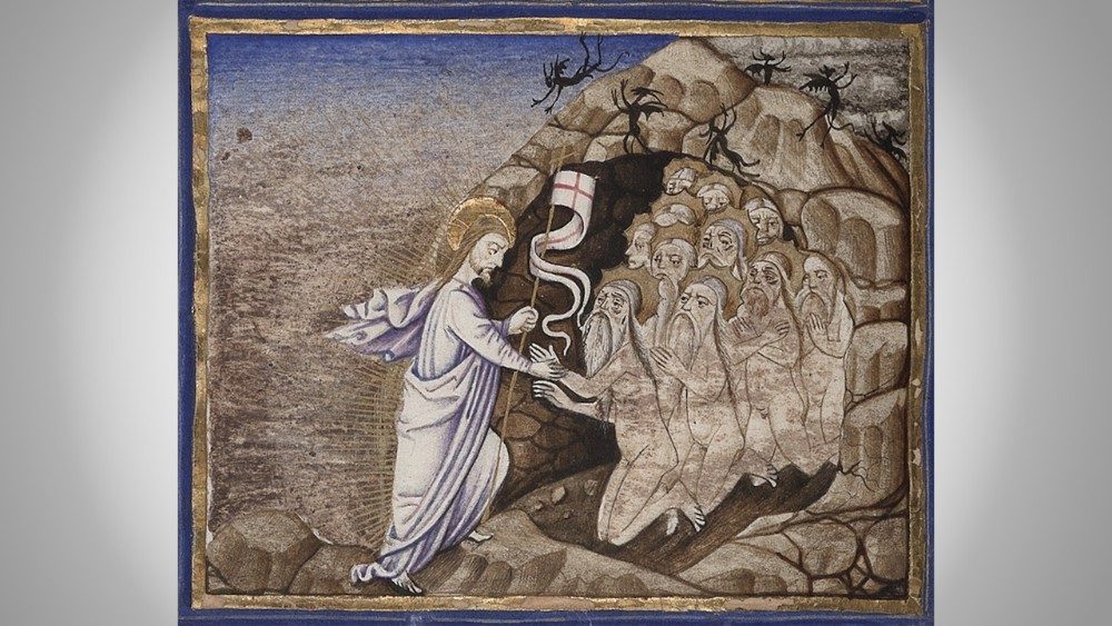 Nel Salterio, identificato come Vat. lat. 3467 c’è una scena che riassume tutti i misteri che contempleremo nelle prossime settimane fino al culmine del Triduo pasquale. Le scene più significative della vita di Cristo e della Resurrezione si sviluppano intorno all’immagine centrale della Crocifissione, consentendo allo spettatore di cogliere con un unico colpo d’occhio il senso più profondo dei misteri della Passione.