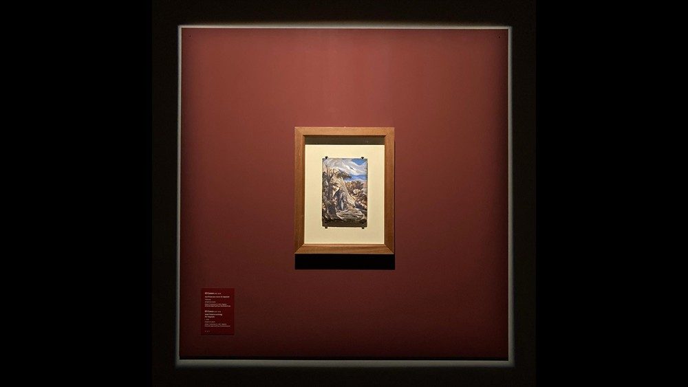 Proviene invece da Napoli, dalla Fondazione Pagliara dell’Università degli Studi Suor Orsola Benincasa, la più minuta tempera su tavola raffigurante San Francesco: un capolavoro giovanile databile intorno al 1570, quando l’artista era documentato a Roma ed era già transitato per le botteghe veneziane di Tiziano e del Tintoretto.