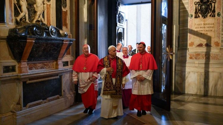 Po trumpos liturginės įžangos ir bazilikos choro giesmės, dalyvaujant dideliam būriui tikinčiųjų, popiežius Leonas XIV sukalbėjo specialų maldavimą, prašydamas Dievo Motinos užtarimo. Apeigų pabaigoje palaiminęs visus buvusius bazilikoje, popiežius vėl stabtelėjo prie savo pirmtako – popiežiaus Pranciškaus, labai mylėjusio šią vietą – kapo, trumpai pasimeldė.