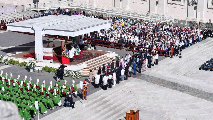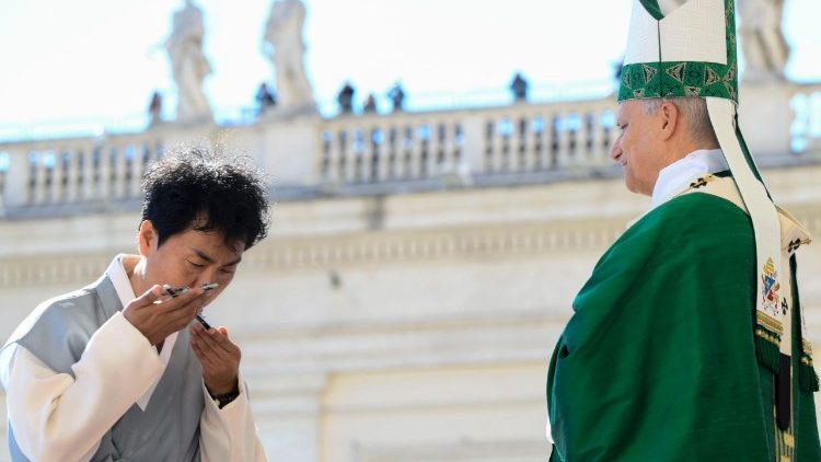 Tačiau prieš homiliją priešais Šventąjį Tėvą išsirikiavo 39 katechetai, vyrai ir moterys, iš įvairių kraštų ir įvairių žemynų: Italijos, Indijos, Pietų Korėjos, Jungtinių Arabų Emyratų, JAV, Mozambiko, Brazilijos, Portugalijos, Peru, Meksikos, Rytų Timoro. Kiekvienas buvo pašauktas vardu ir kiekvienas atsakė – „Štai aš!“.