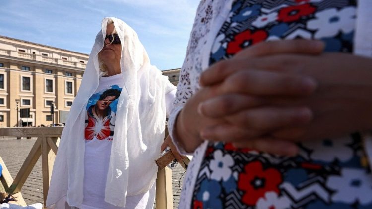 „Broliai ir seserys, šiandien yra nuostabi šventė visai Italijai, visai Bažnyčiai, visam pasauliui! Prieš iškilmingas kanonizacijosapeigas norėjau pasisveikinti su jumis ir pasakyti keletą žodžių jums visiems, nes ši šventė ne vien labai iškilminga, bet ir labai džiaugsminga diena! Ypač noriu pasveikinti daugybę jaunų žmonių, vaikinų ir merginų, kurie atvyko į šias šv. Mišias! Tai tikrai Viešpaties palaiminimas: būti kartu su jumis, atvykusiais iš įvairių šalių. Tai tikra tikėjimo dovana, kuria norime dalytis“, – nuo pakylos priešais Šv. Petro baziliką, kreipdamasis į tūkstančius susirinkusių maldininkų ir piligrimų, jaunuolių, sakė popiežius, pridūręs, kad po apeigų nusileis į aikštę, kad galėtų visus pasveikinti iš arti. Leonas pakvietė visus dalyvauti kanonizacijos apeigose atvira širdimi, priimti Dievo malonę, pajusti ir išgyventi tai, ką išgyveno ir Petras Jurgis bei Karolis: meilę Jėzui Kristui, ypač Eucharistijoje, bet taip pat vargšuose, broliuose ir seseryse. Jis pasveikino šventųjų šeimų narius, tarp kurių buvo ir Karolio Akučio tėvai, brolis ir sesuo.