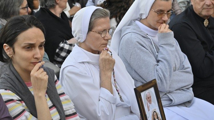 Otrdienas, 22. aprīļa, vakarā vairāki simti svētceļnieku no daudzām pasaules valstīm sapulcējās Svētā Pētera laukumā, lai lūgtos Rožukroni par mūžībā aizgājušo pāvestu Francisku. Lūgšanu vadīja kardināls Džovanni Batista Re, kurš sestdien vadīs pāvesta Franciska bēru dievkalpojumu.