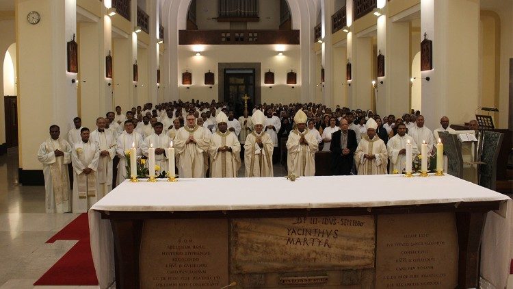 വത്തിക്കാനിലെ കൊളെജ്ജോ ഉർബാനോയിൽ സിസിബിഐയുടെ ആഭിമുഖ്യത്തിൽ 300 ലധികം ഇന്ത്യൻ പുരോഹിതരും, സന്യാസിനികളും, വൈദീക വിദ്യാർത്ഥികളും ഒരുമിച്ച് അർപ്പിച്ച ദിവ്യബലി. വത്തിക്കാനിലെ കൊളെജ്ജോ ഉർബാനോയിൽ സിസിബിഐയുടെ ആഭിമുഖ്യത്തിൽ 300 ലധികം ഇന്ത്യൻ പുരോഹിതരും, സന്യാസിനികളും, വൈദീക വിദ്യാർത്ഥികളും ഒരുമിച്ച് അർപ്പിച്ച ദിവ്യബലി.