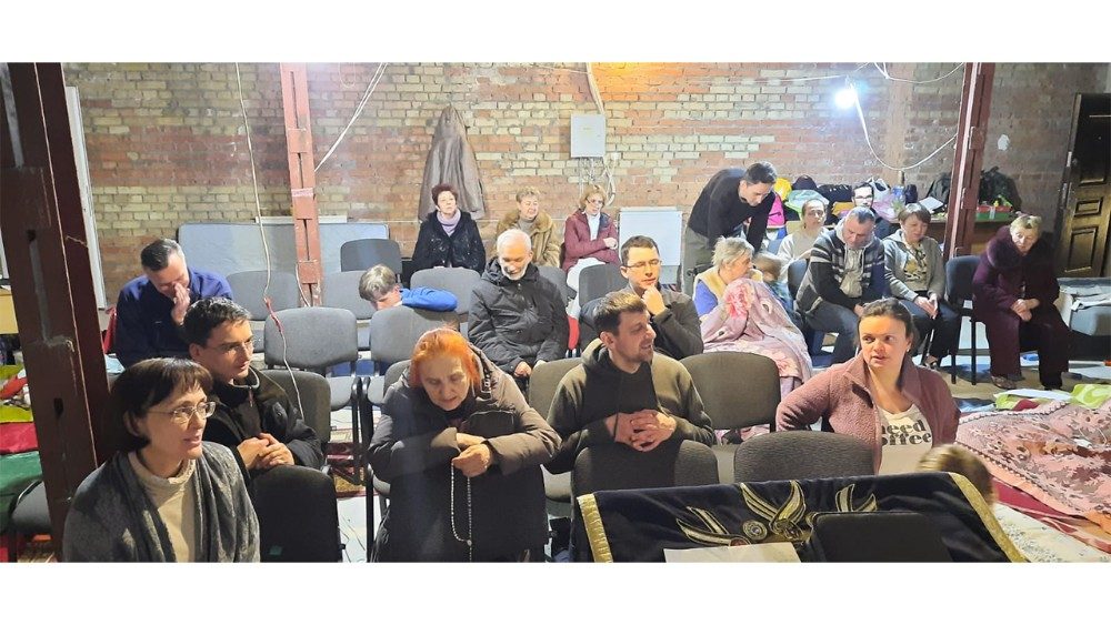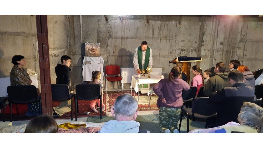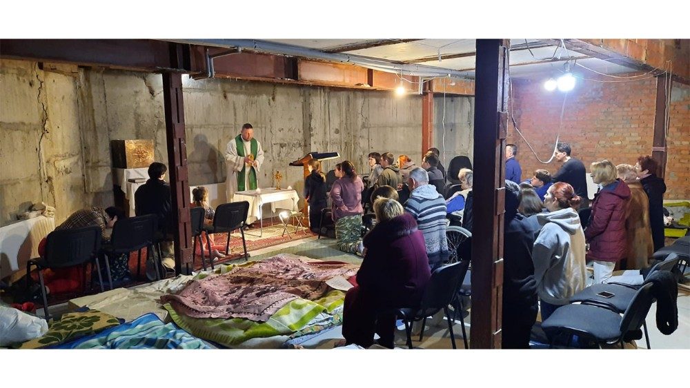 Do caminho neocatecumenal, Pe. Lucas atualmente é vigário da Igreja da Dormição da Santíssima Virgem Maria. Ele e mais 35 pessoas, entre membros da comunidade e paroquianos que pediram abrigo, estão vivendo dentro da Igreja, numa parte segura que fica no subsolo. Por enquanto, não faltam luz nem calefação.