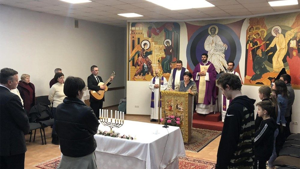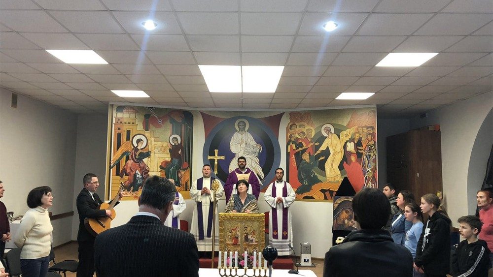 O sacerdote pertence ao caminho neocatecumenal e é vigário da Igreja da Dormição da Santíssima Virgem Maria. Das 35 pessoas acolhidas inicialmente, duas famílias conseguiram deixar a cidade. Atualmente, cerca de 30, entre membros da comunidade e paroquianos, estão vivendo dentro da Igreja, numa parte segura que fica no subsolo. Ainda há água, comida, eletricidade e calefação. Para reverter esta situação, Padre Lucas não tem dúvidas: